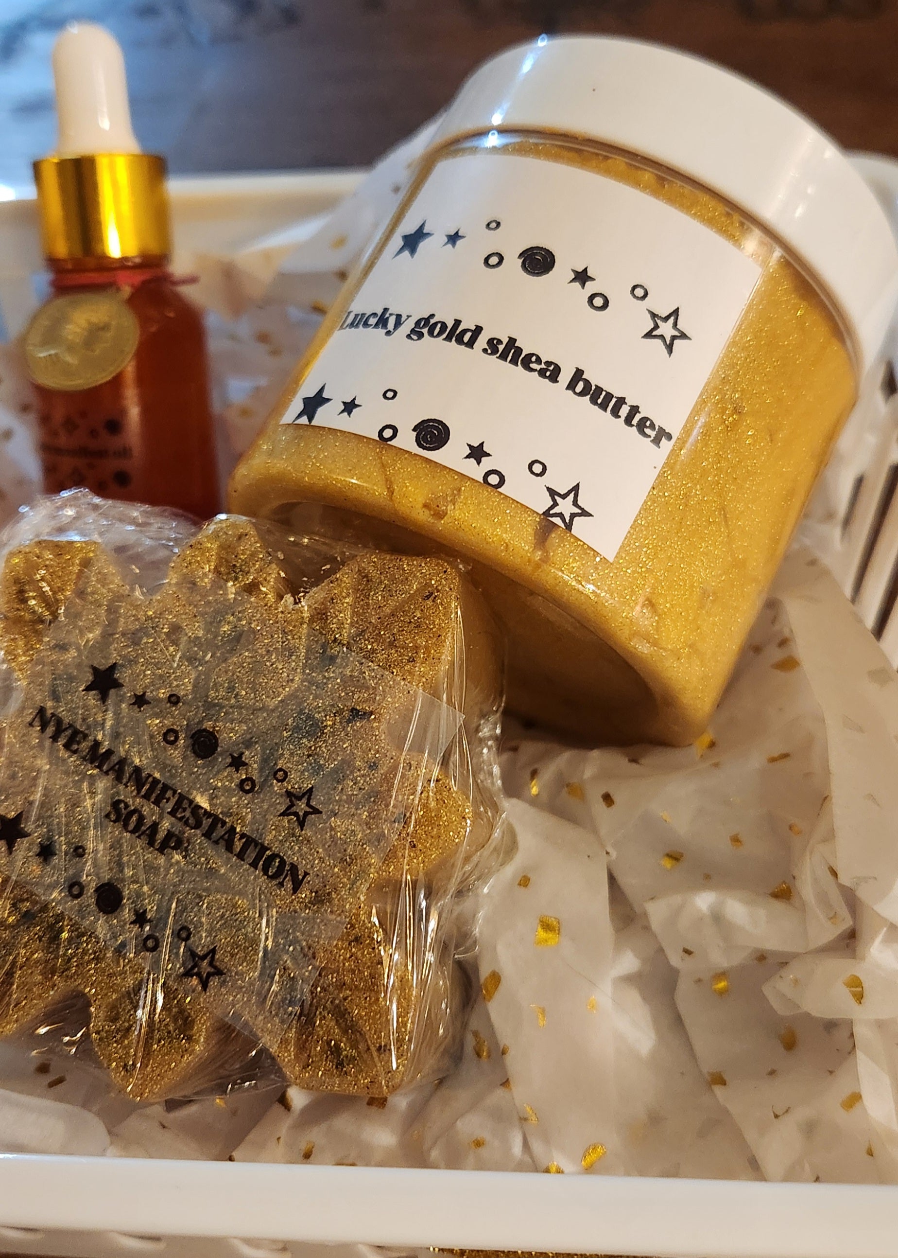The luck kit has products strained in with gold flakes to bring luck/prosperity as well as protection oil to prevent bad financial decisions, bad luck, or money loss!
