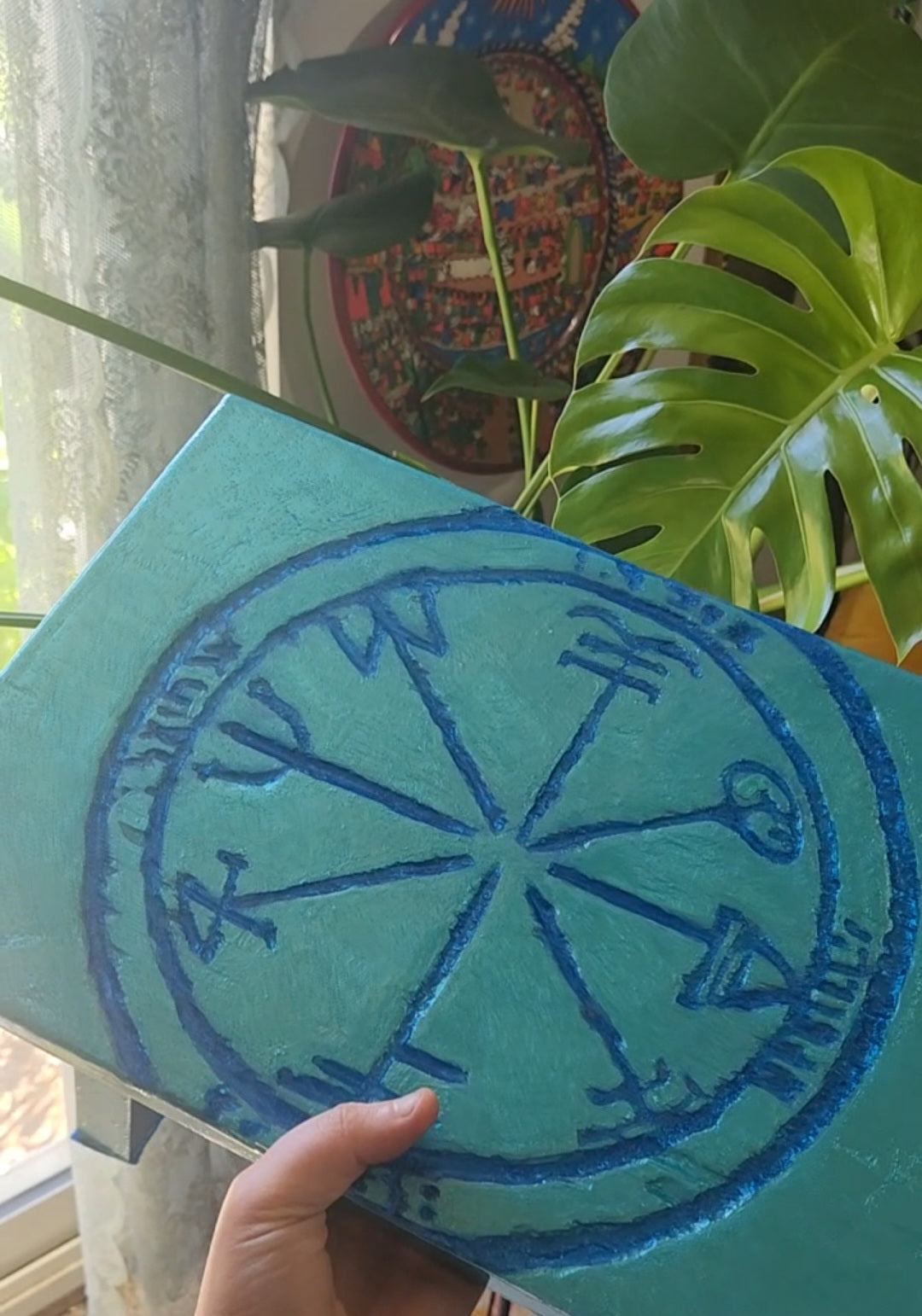 Each altar is cleansed and wood carved. The process with this one specifically comes from cleansing the wood in Jerusalem/holy water (to prevent backfire or issues later in the painting process) it works as an agent to protect and cleanse the altar but also protect the person using the altar!